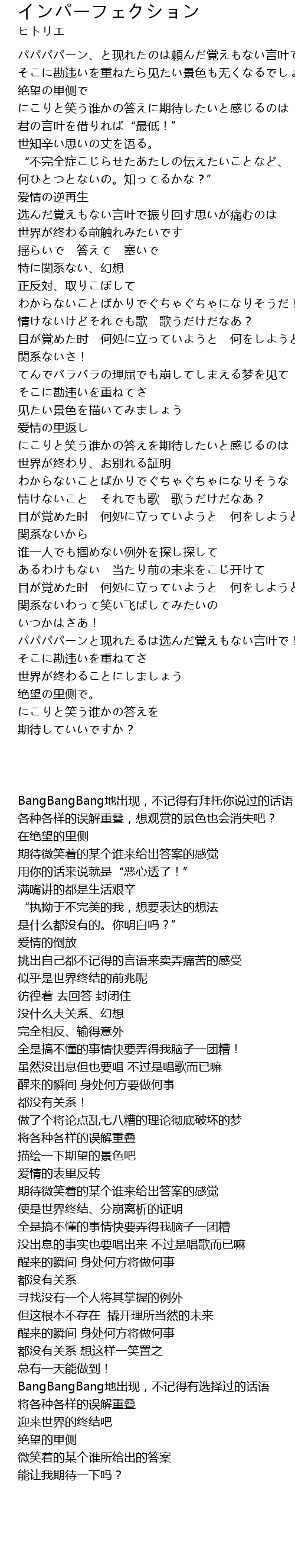 | [00:17.41] | BangBangBang地出现,不记得有拜托你说过的话语 |