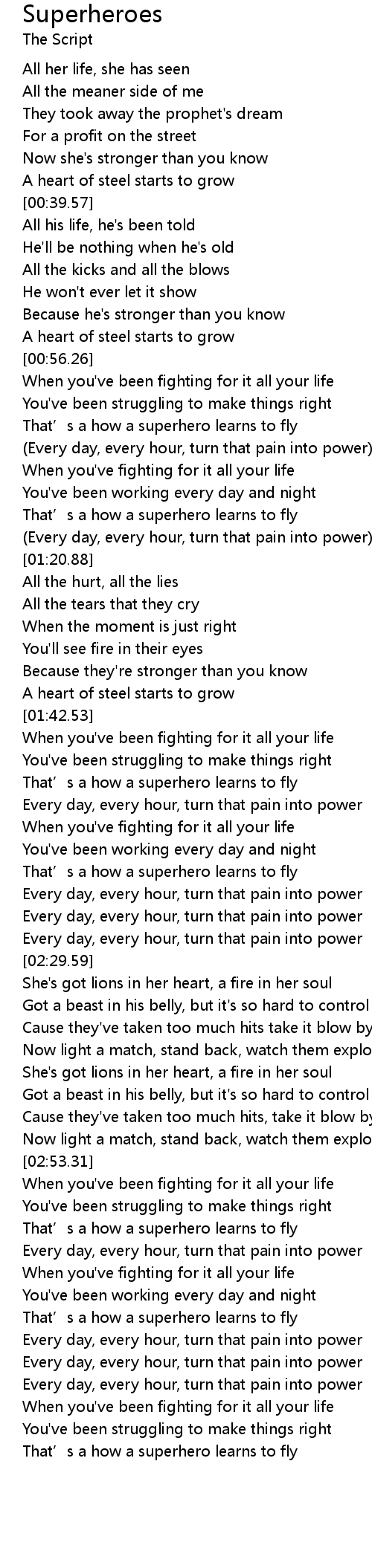 | [03:00.27] | That’s a how a superhero learns to fly |