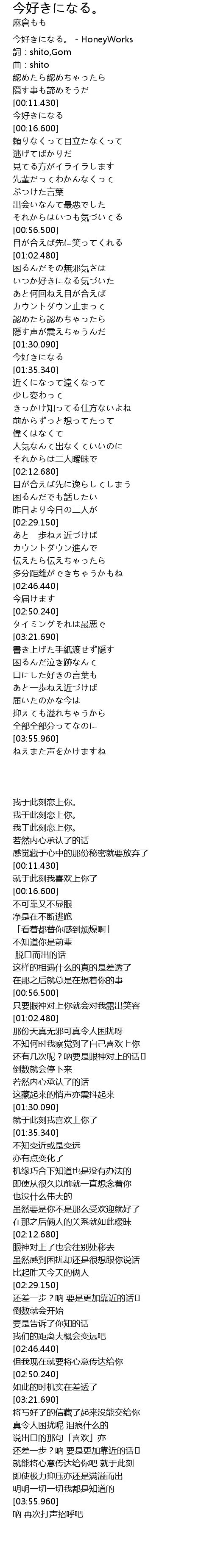 | [00:00.040] | 今好きになる。 - HoneyWorks |