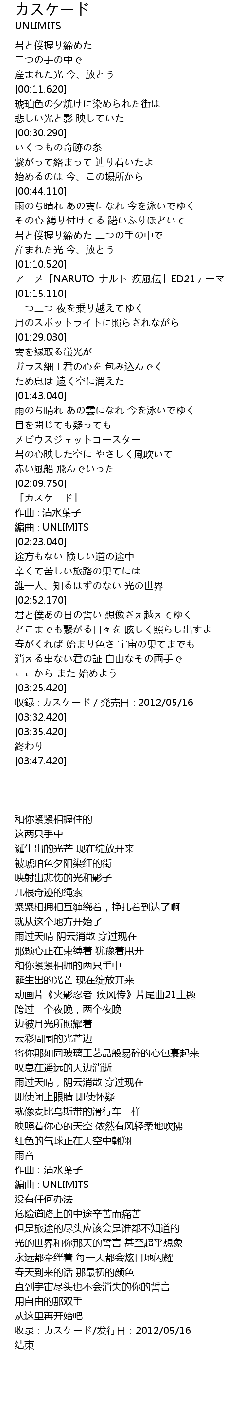 | [03:27.420] | 收录:カスケード/发行日:2012/05/16 |