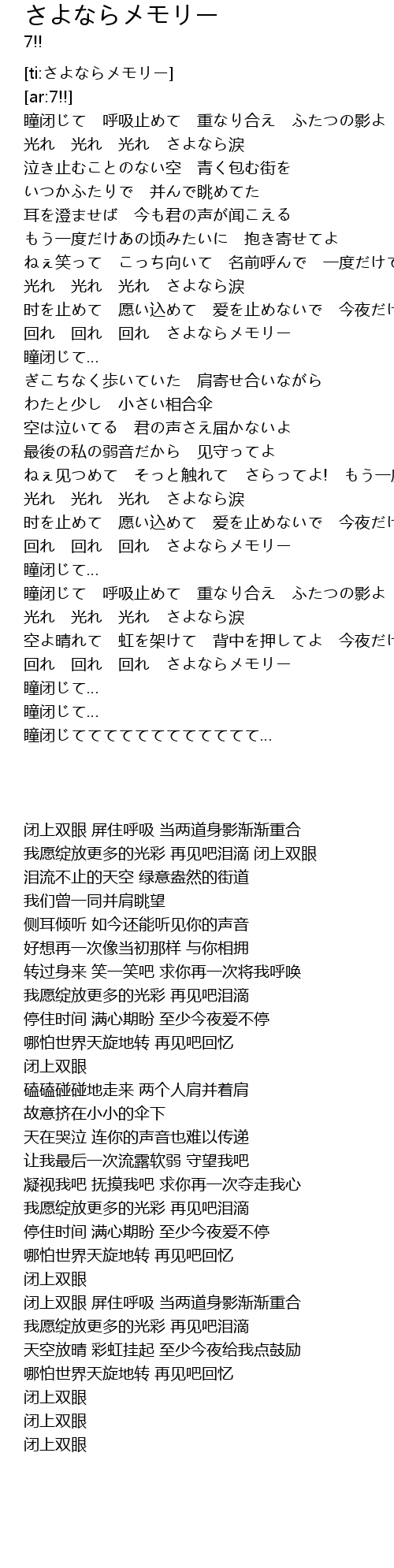 | [ti:さよならメモリー] | |