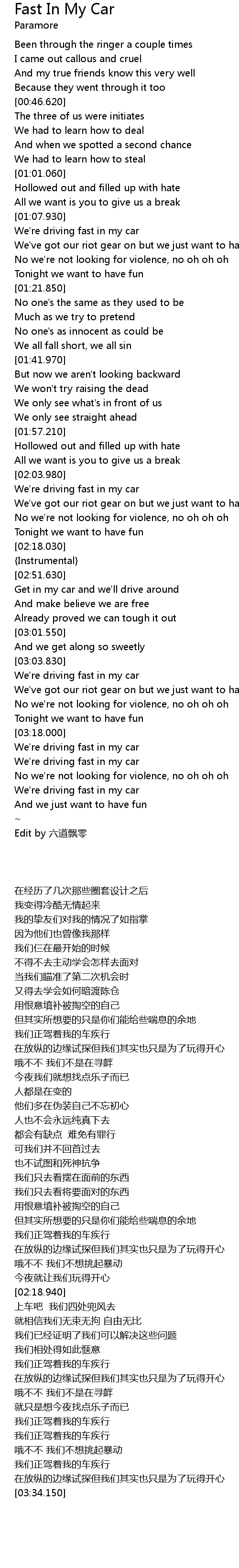 | [03:19.480] | 我们正驾着我的车疾行 |
