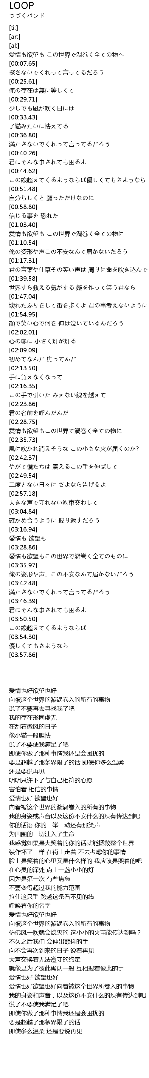 | [02:29.05] | 爱情也好欲望也好 向被这个世界的漩涡卷入的所有的事物 |