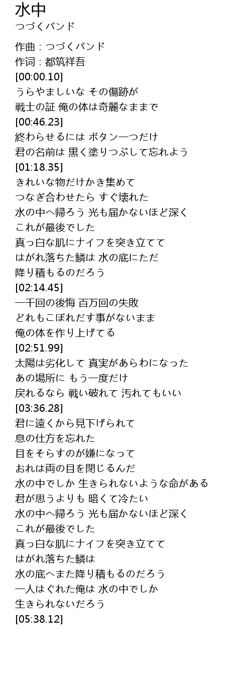 | [04:48.26] | 水の中へ帰ろう 光も届かないほど深く |