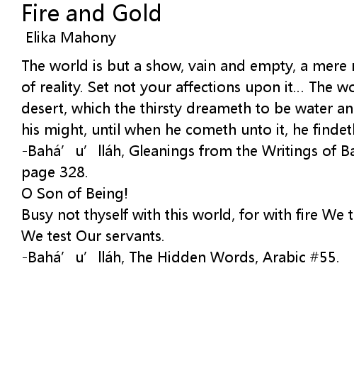 | Busy not thyself with this world, for with fire We test the gold, and with gold We test Our servants. | |