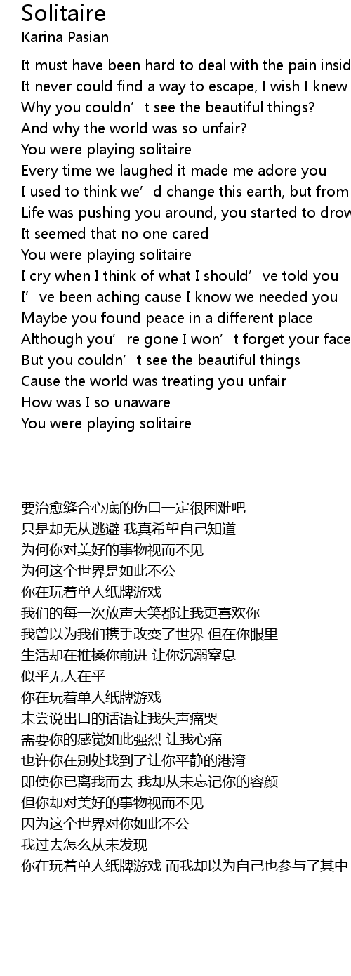 | [00:47.96] | You were playing solitaire |