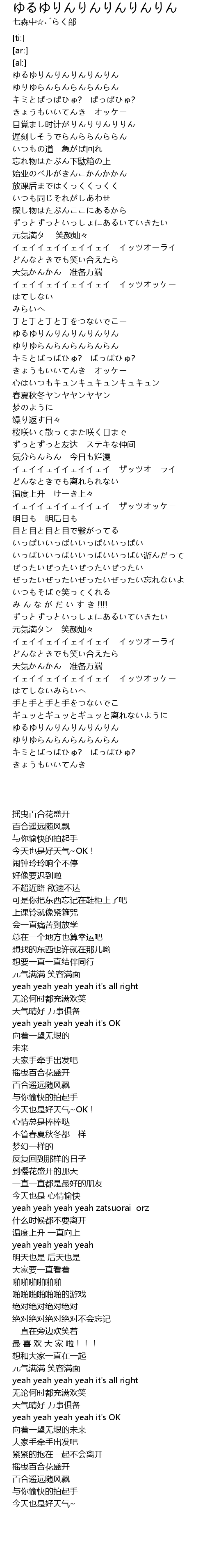 | [01:34.68] | ゆるゆりんりんりんりんりん |