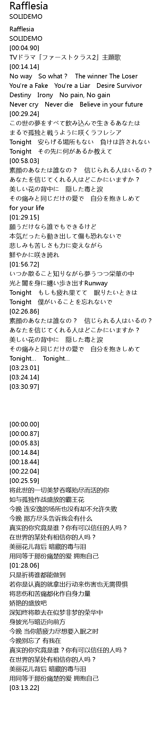 | [00:36.52] | まるで孤独と戦うように咲くラフレシア |