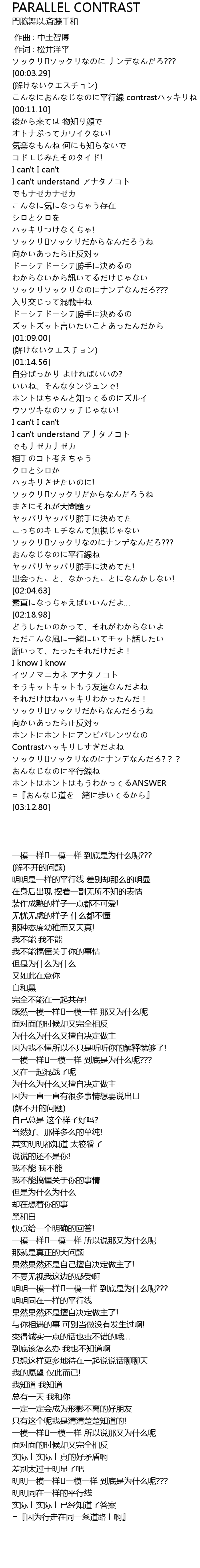 | [02:58.99] | 明明一模一样⇔一模一样 到底是为什么呢??? |