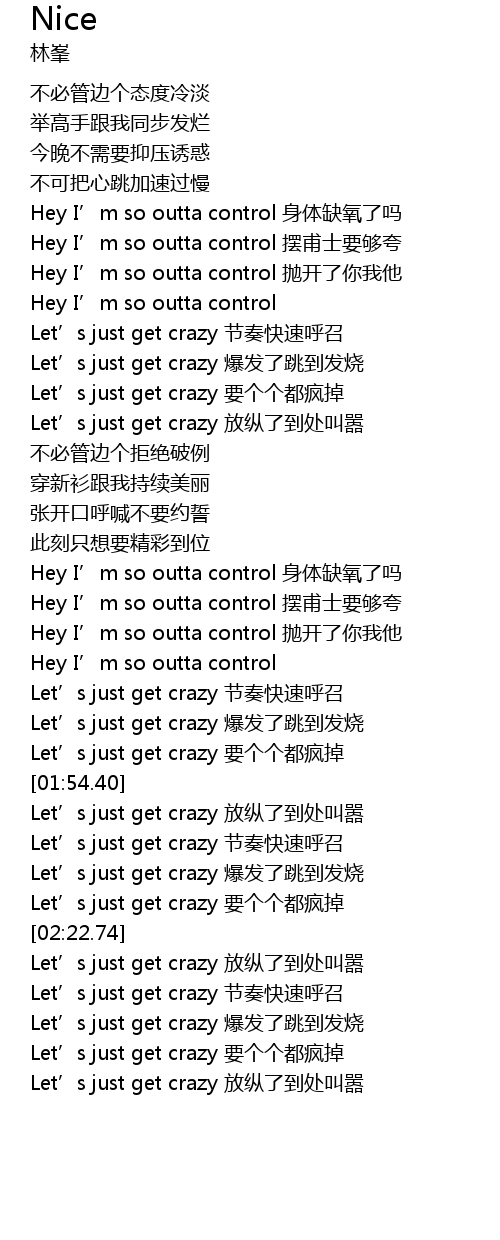 | [01:55.01] | Let' s just get crazy fang zong le dao chu jiao xiao |