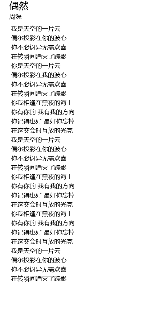 | [00:35.75] | 你不必讶异无需欢喜 |