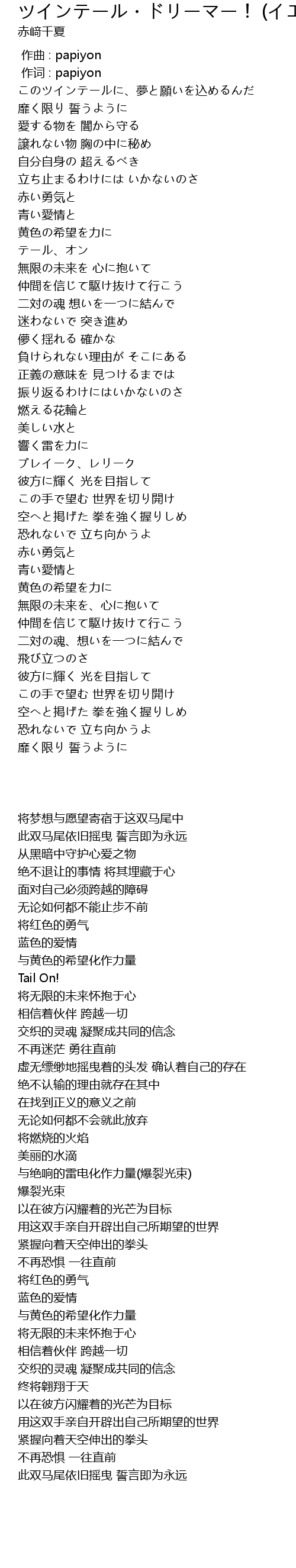 | [00:01.50] | このツインテールに、夢と願いを込めるんだ |