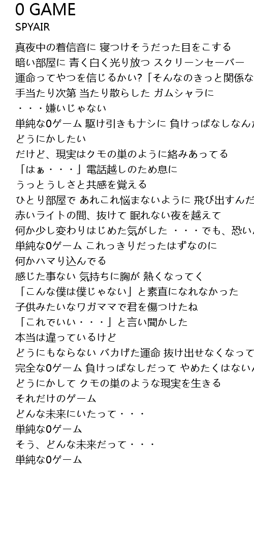 | 完全な0ゲーム 負けっぱなしだって やめたくはないんだ | |