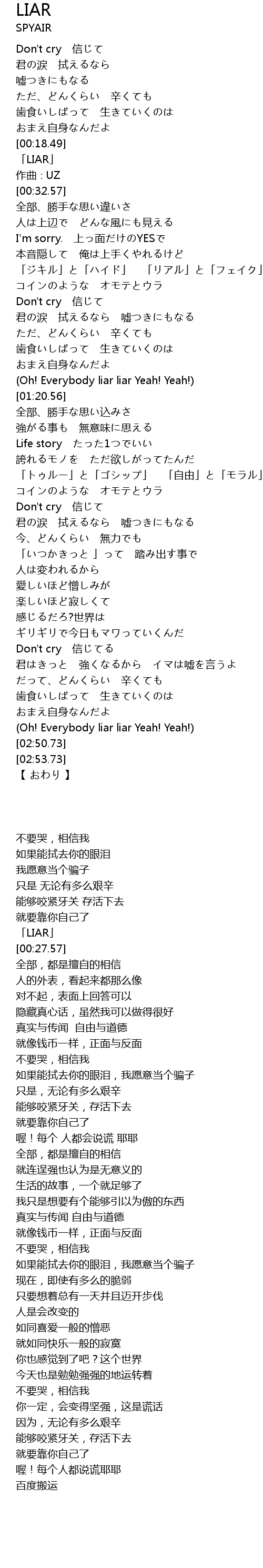 | [02:46.64] | (Oh! Everybody liar liar Yeah! Yeah!) |