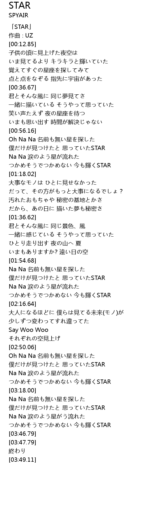 | [00:00.85] | 「STAR」 |
