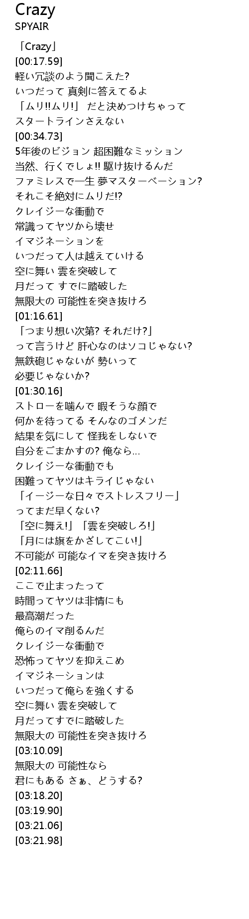 | [02:42.91] | クレイジーな衝動で |