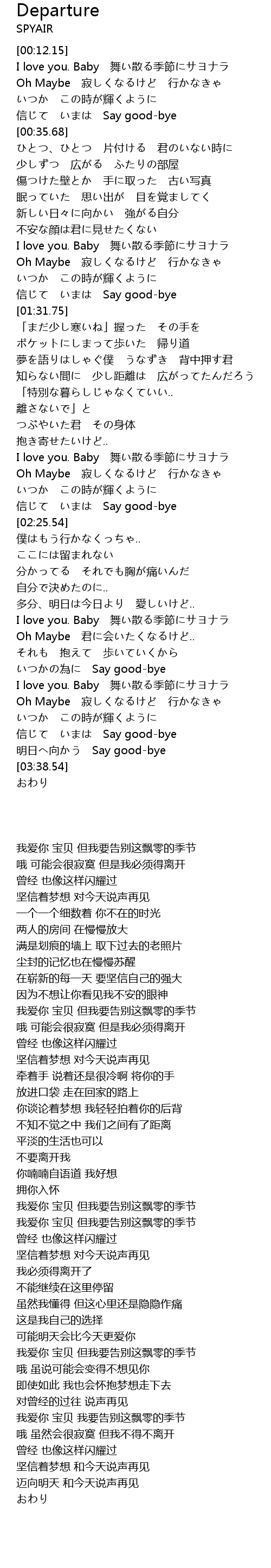 | [02:04.98] | I love you. Baby 舞い散る季節にサヨナラ |