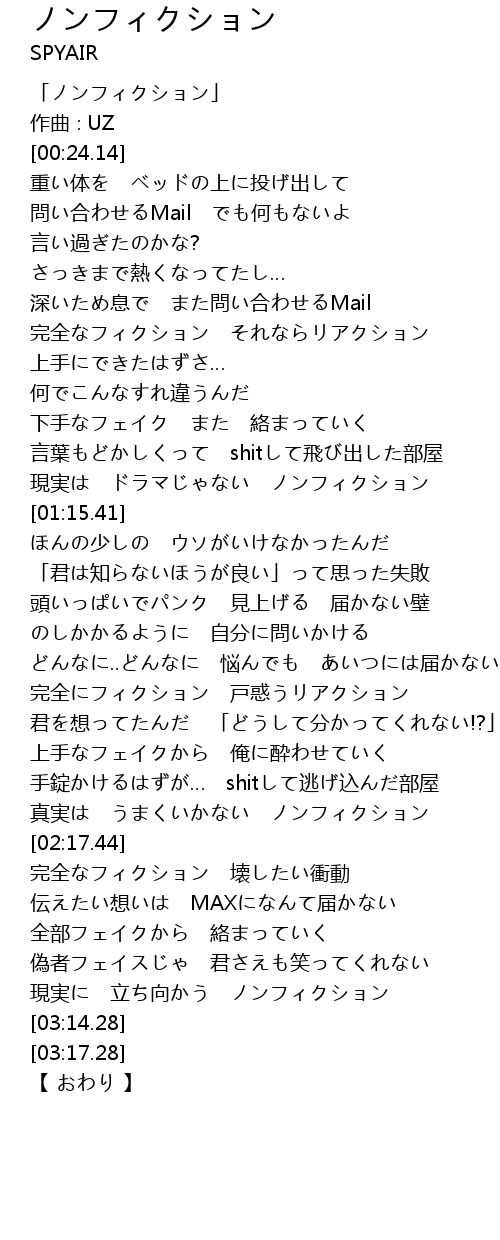 | [00:01.14] | 「ノンフィクション」 |