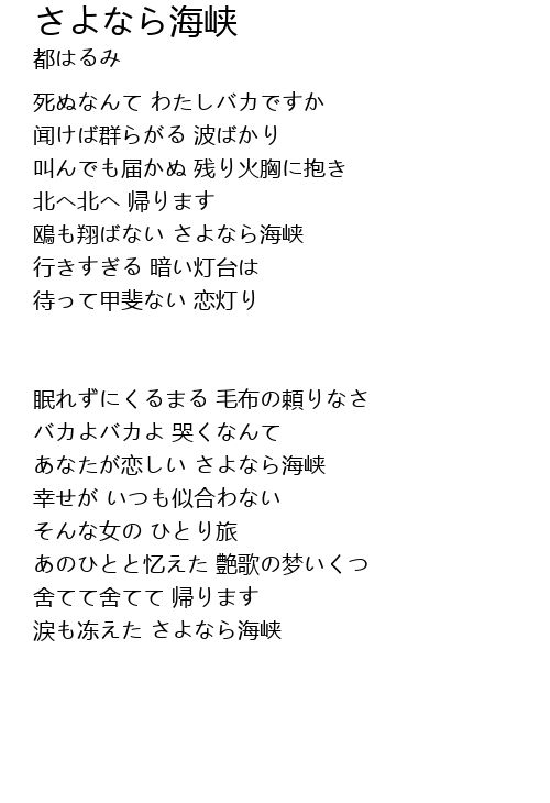 | 涙も冻えた さよなら海峡 |