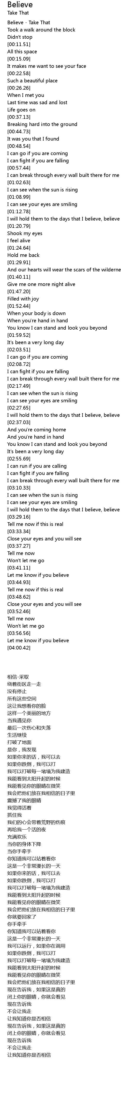 Believe - Take That |