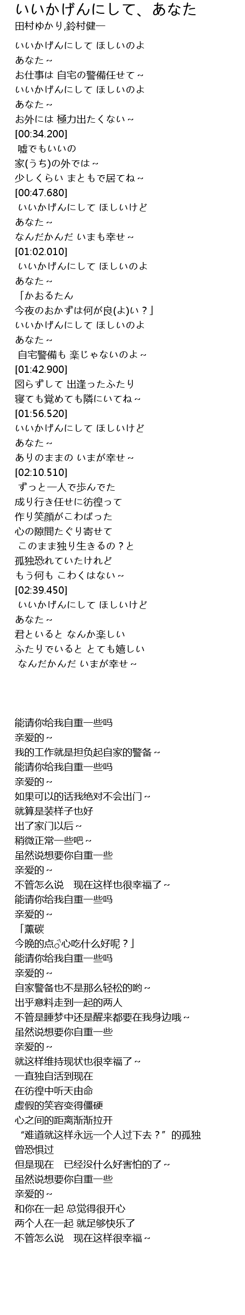| [00:56.900] | なんだかんだ いまも幸せ~ |