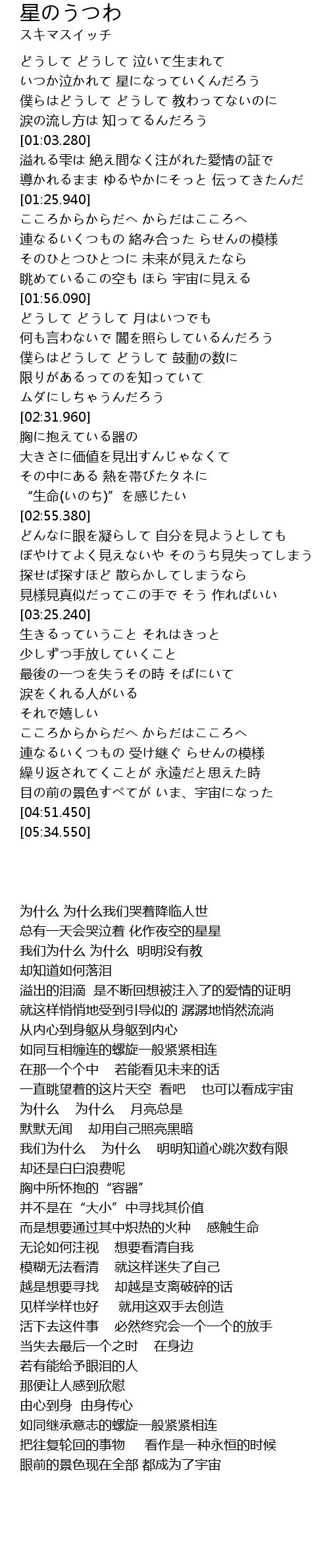 | [00:46.090] | いつか泣かれて 星になっていくんだろう |