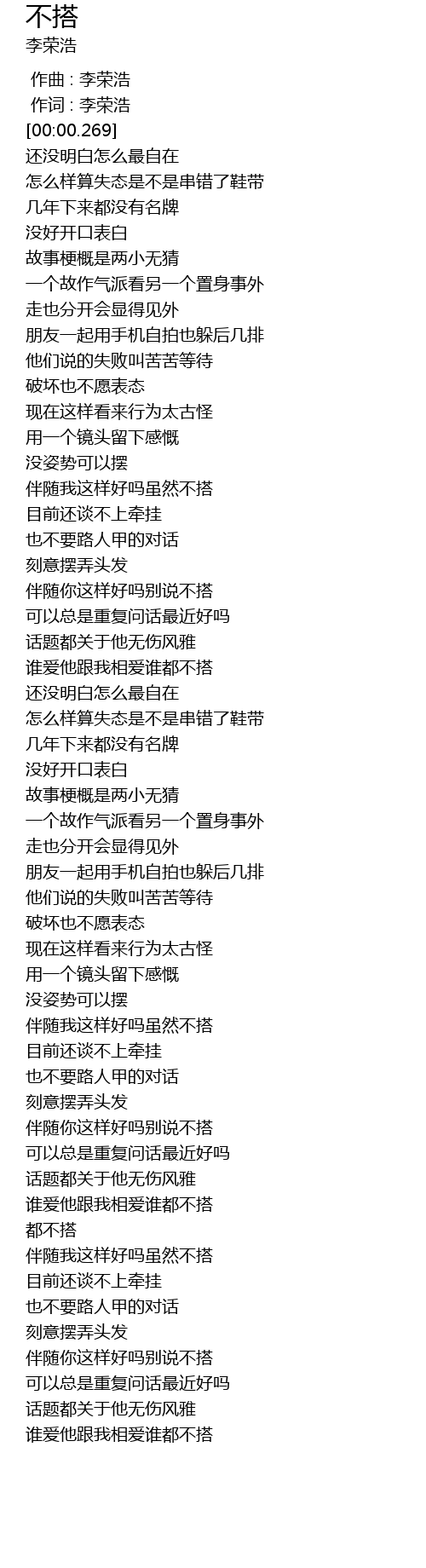 | [01:21.240] | 伴随你这样好吗别说不搭 |