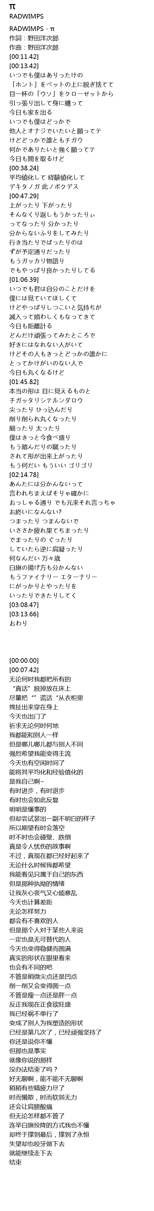 | [01:42.58] | 今天也变得稳健而圆满 |