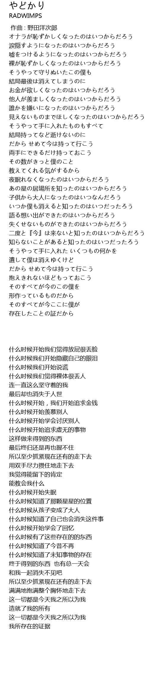 | [00:00.00] | 作曲 : 野田洋次郎 |