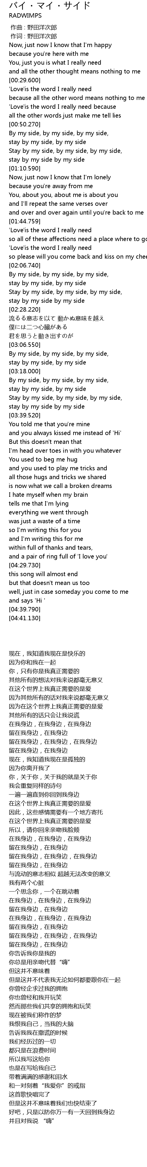 | [00:52.520] | By my side, by my side, by my side, |