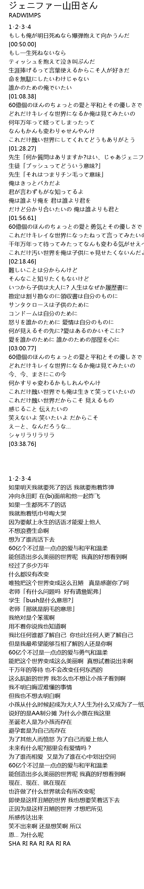 | [00:45.25] | もしも俺が明日死ぬなら爆弾抱えて向かうんだ |