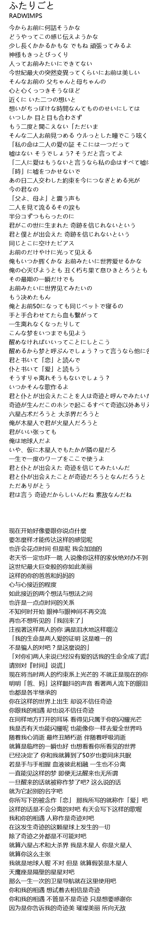 | [03:41.69] | 君と仆が出会えたことが奇迹だろうとなんだろうと ただありがとう |