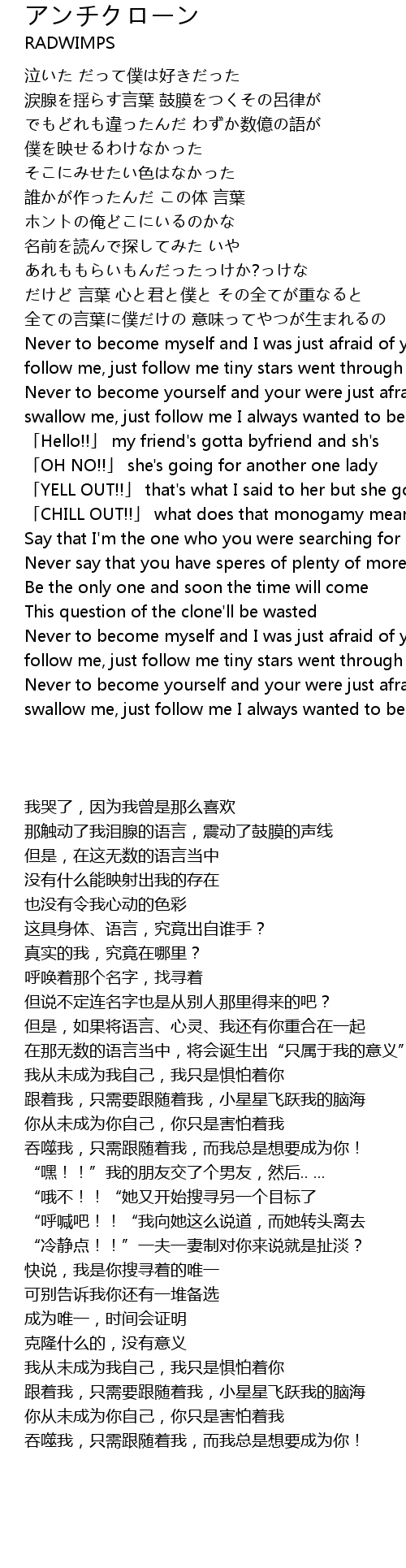 | [02:36.34] | swallow me, just follow me I always wanted to become you become you |