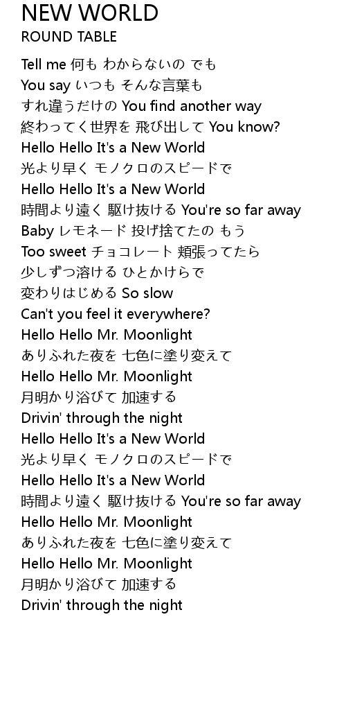 | [02:48.37] | Hello Hello It's a New World |