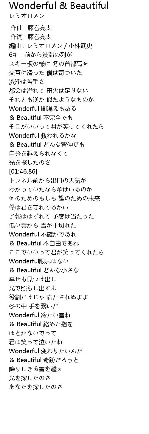 | [03:55.60] | Wonderful 変わりたいんだ |