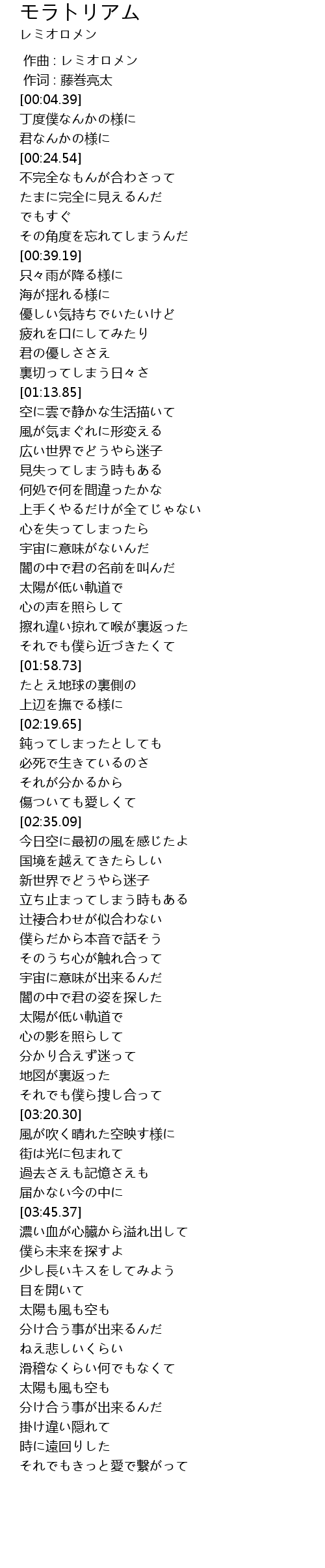 | [00:01.00] | 作词 : 藤巻亮太 |