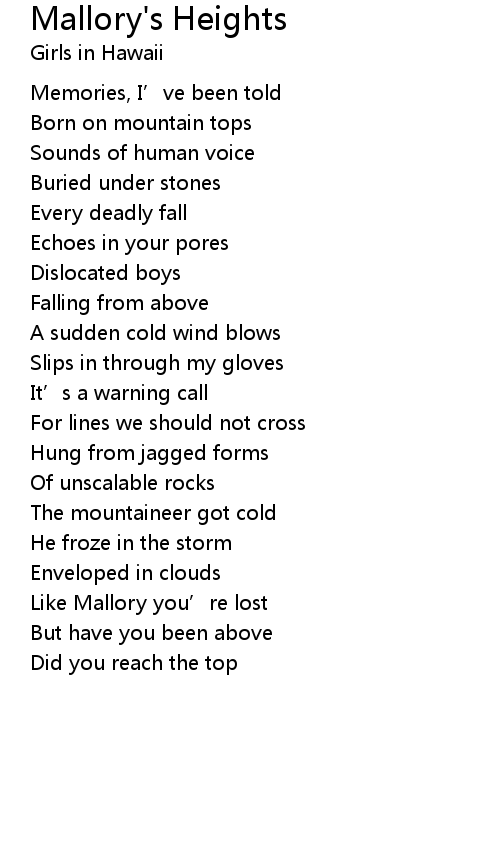 | 歌曲 | Mallory's Heights |