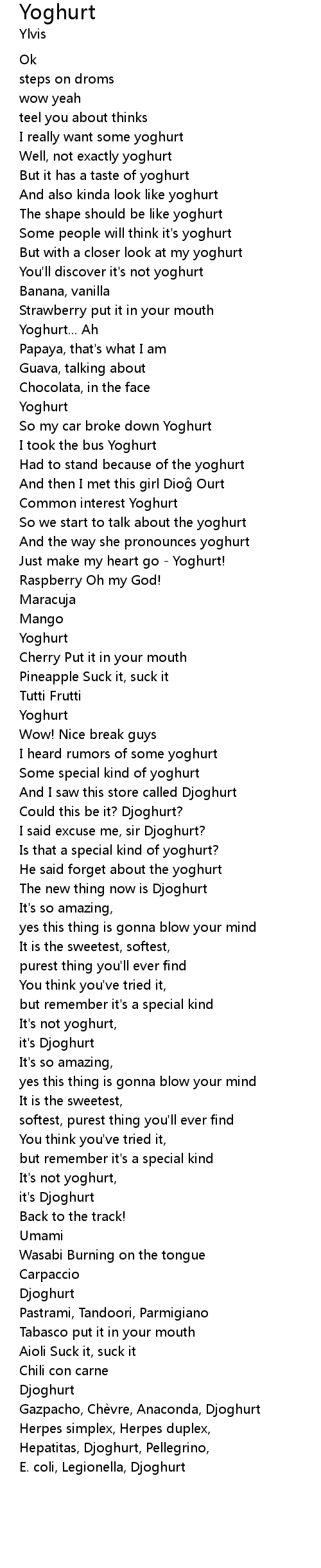 | You'll discover it's not yoghurt | |