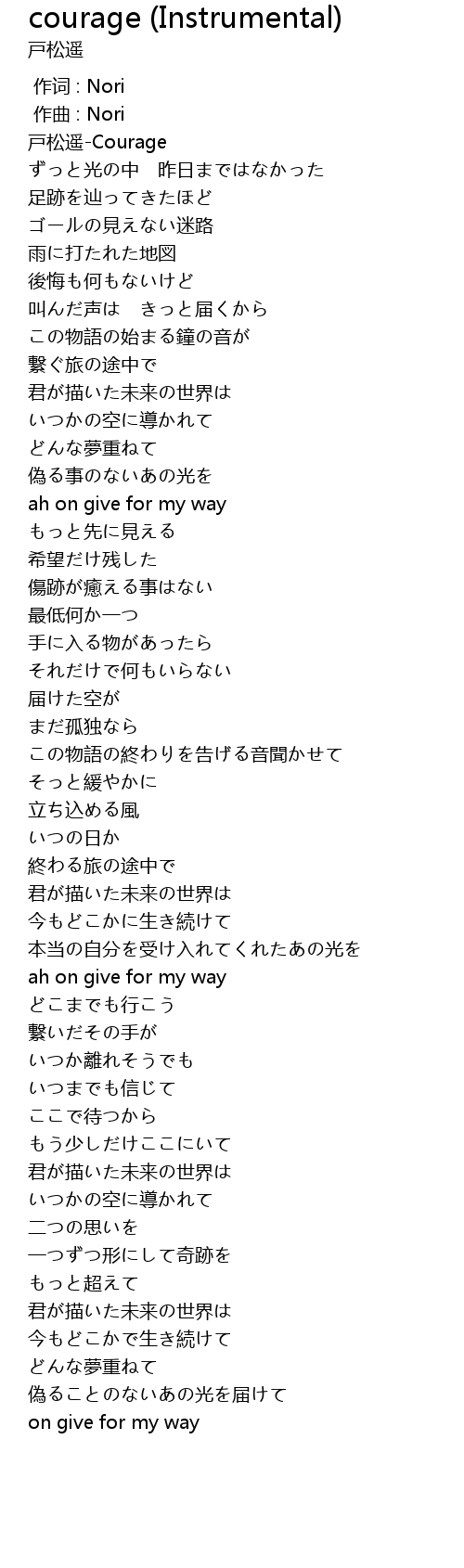 | [03:38.788] | 偽ることのないあの光を届けて |