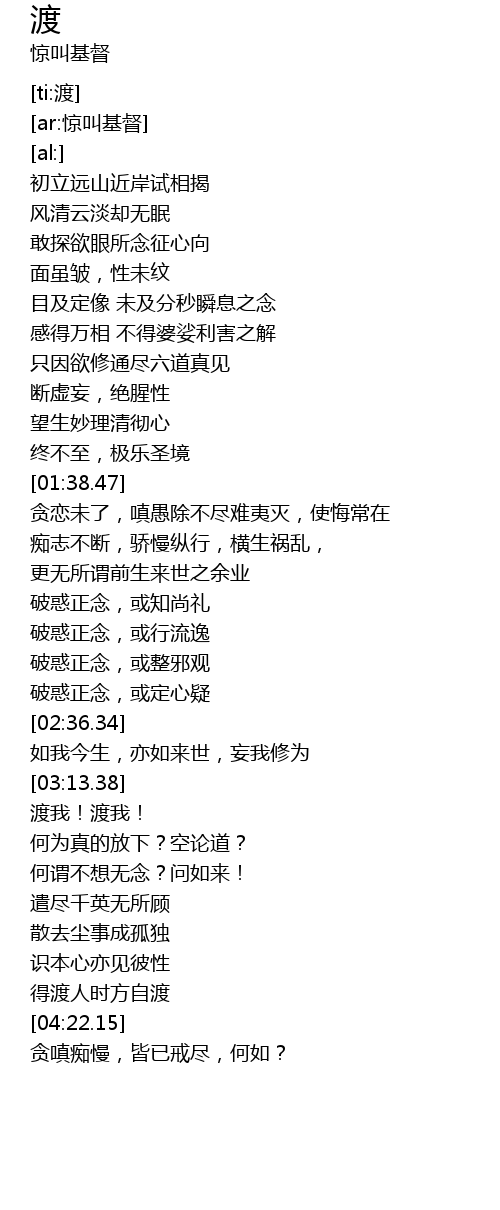 | [04:17.69] | 得渡人时方自渡 |