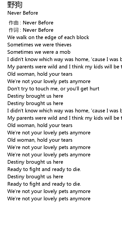 | [00:01.00] | 作词 : Never Before |