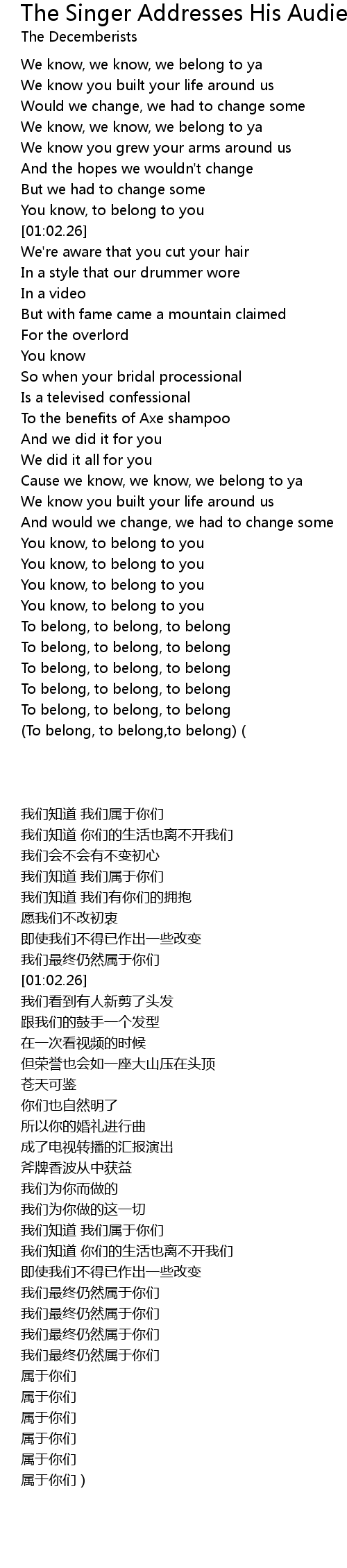 | [01:52.37] | Cause we know, we know, we belong to ya |