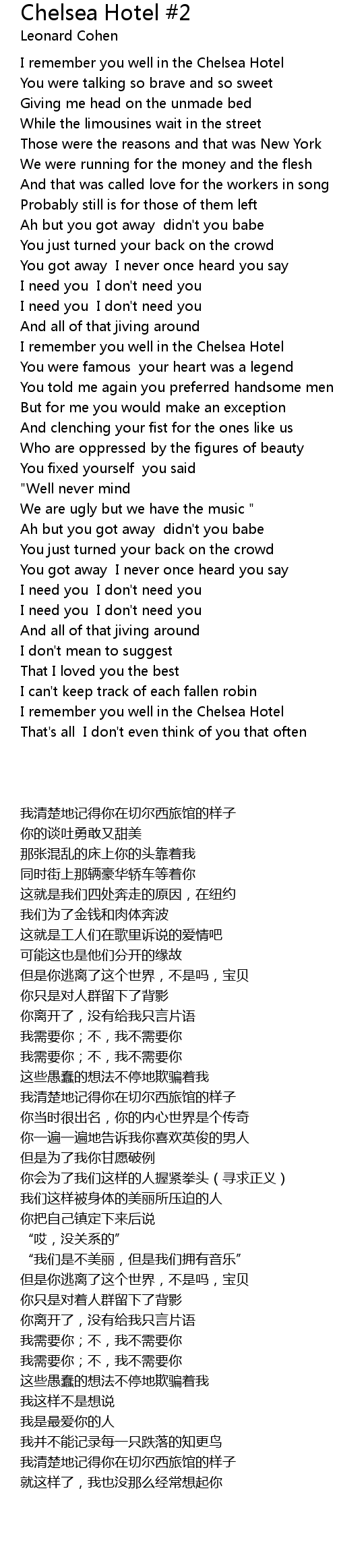 I remember you well in the Chelsea Hotel |