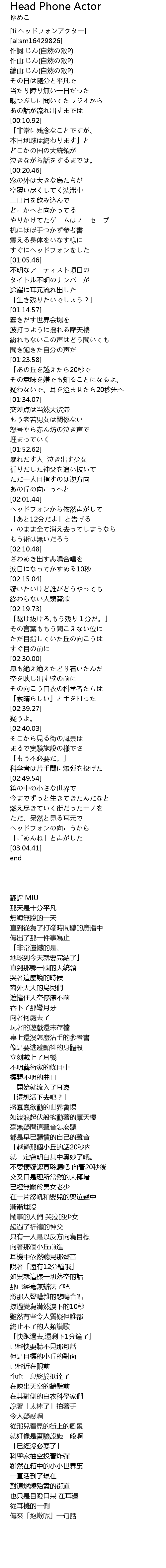 | [ti:ヘッドフォンアクター] | |
