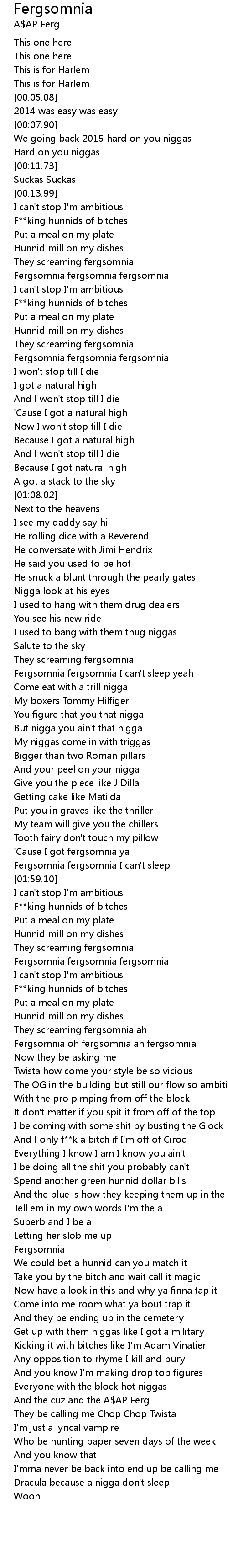 Fergsomnia 歌词