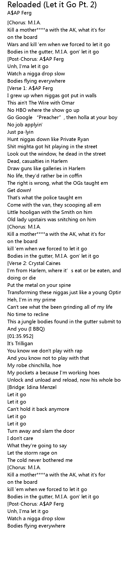 | [00:12.075] | Bodies in the gutter, M. I. A. gon' let it go |