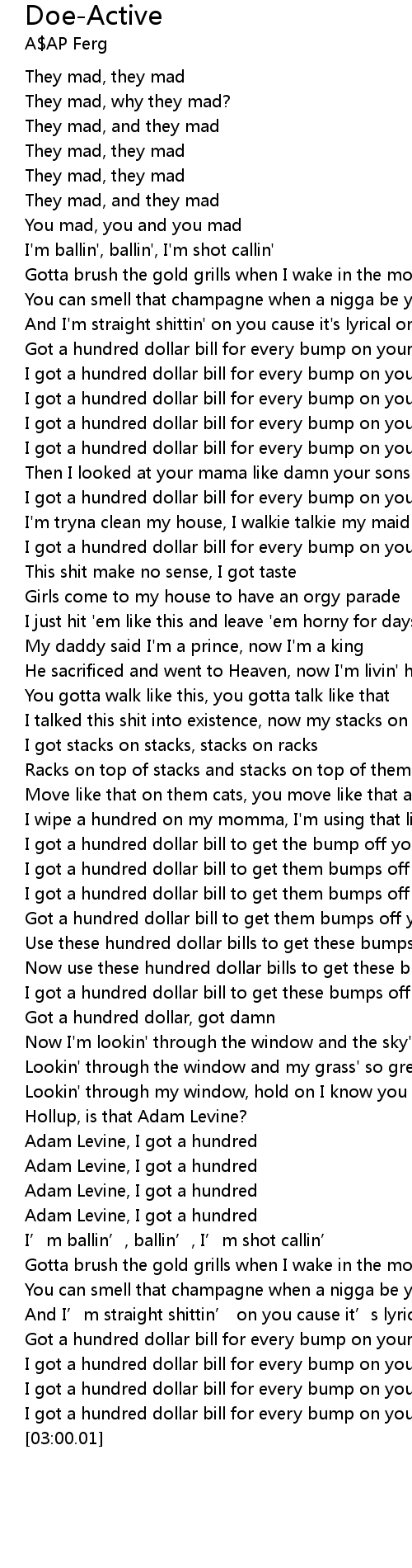 | [02:20.34] | Adam Levine, I got a hundred |