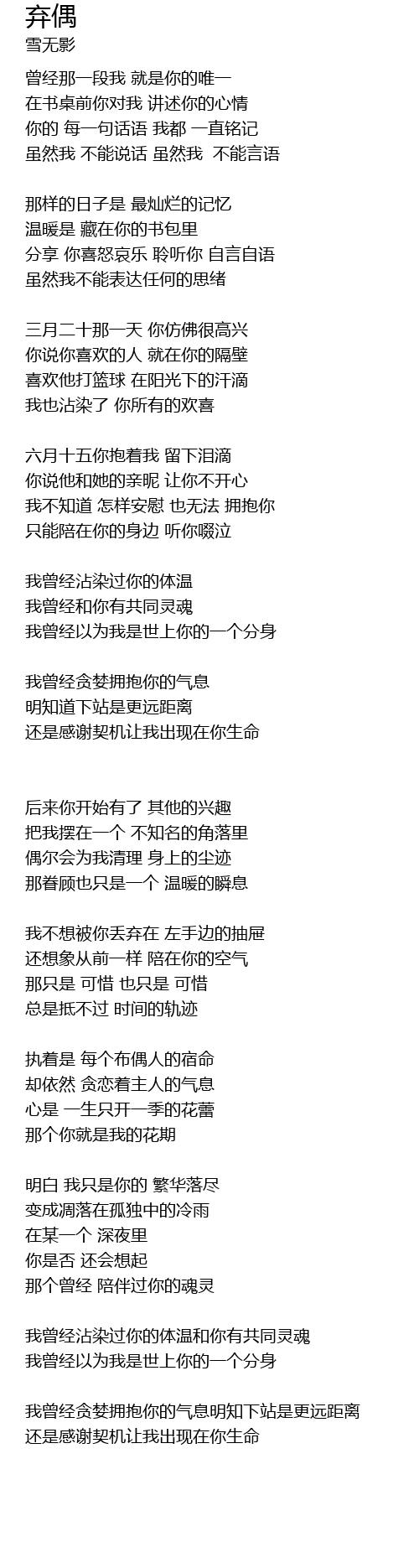 | wǒ céng jīng yǐ wéi wǒ shì shì shàng nǐ de yí gè fēn shēn | |
