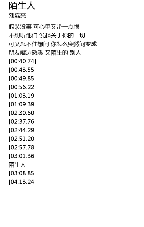 | [03:58.01][03:01.36][01:40.78] | 我会是 普通朋友 或是 陌生人 |