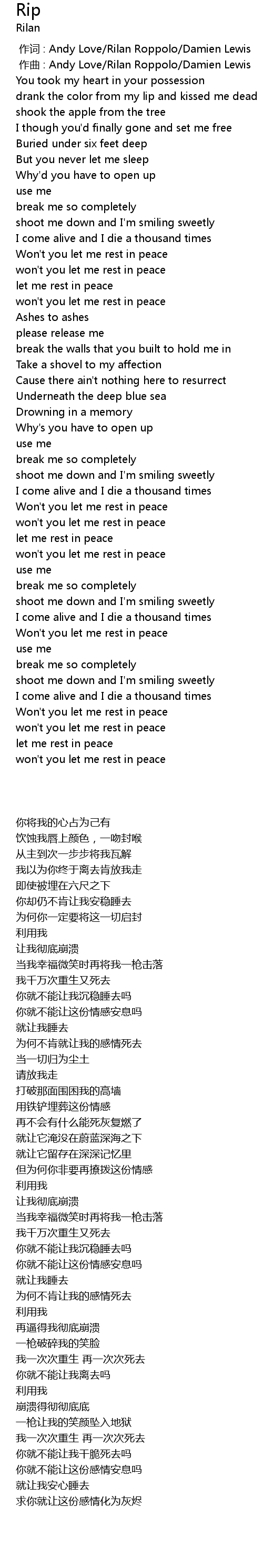 | [00:01.000] | zuo qu : Andy Love Rilan Roppolo Damien Lewis |